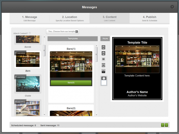 You can 1) sync your Facebook and Twitter accounts to the system, so that pushed offers are simultaneously posted to your social media pages, 2) choose what devices you message will go to (e.g. only Android users, or only iPhone users), and 3) send offers that contain a link to a URL or a tab within your app.