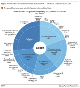 Forrester has released its latest forecasts regarding IT spending in 2013, and many interesting trends have been noted. Leading them all, however, is the fact that the majority of all IT spending this year will go into apps! In total, about $2 trillion will be invested into software, hardware, and IT services by enterprises and governments. At $234 billion, however, apps will be the largest piece of the pie (other large pieces are custom-built software, systems integration, and consulting).